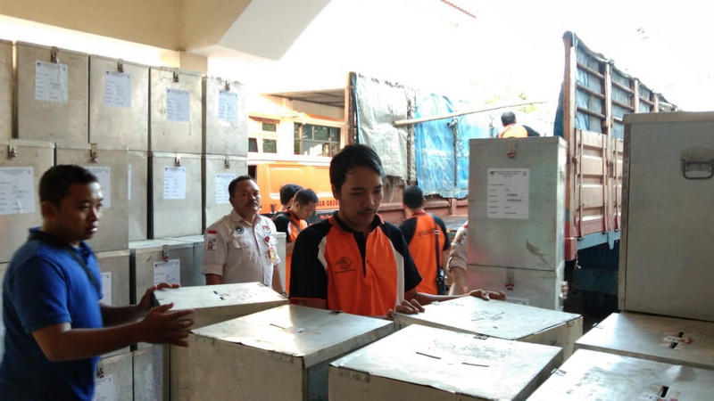 Blora - Komisi Pemilihan Umum (KPU) Kabupaten Blora mulai mendistribusikan logistik Pemilihan Gubernur dan Wakil Gubernur Jawa Tengah 2018, ke Panitia Pemilihan Kecamatan (PPK) yang ada di 16 Kecamatan se Kabupaten Blora.