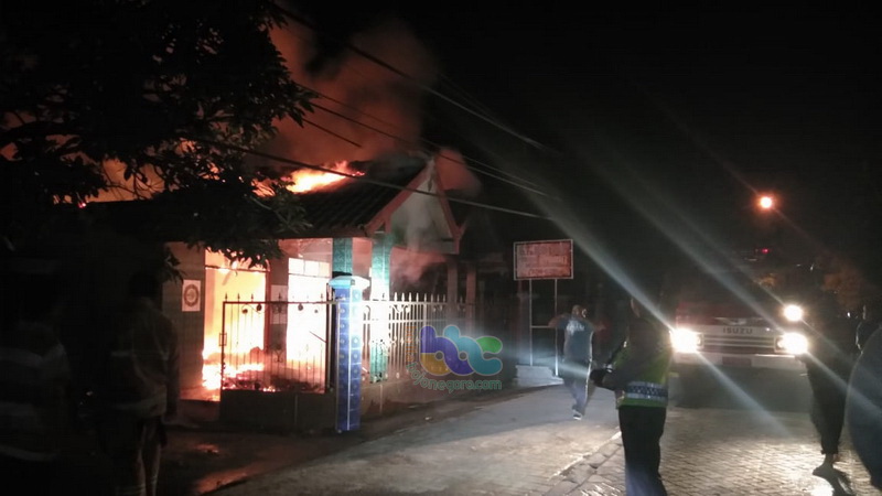 Bojonegoro (Kasiman) - Kebakaran hebat menghanguskan sebuah rumah yang dipergunakan untuk tempat usaha kerajinan kayu dan mebel milik H Muhtadi (70), warga Dusun Sendang Kijing Desa Sambeng RT 013 RW 004 Kecamatan Kasiman Kabupaten Bojonegoro, pada Minggu (01/07/2018) sekira pukul 01.00 WIB dini hari tadi. Sumber api diduga berasal dari korsleting arus listrik yang kemudian membakar barang-barang yang ada di dalam rumah tersebut hingga akhirnya menghanguskan bangunan berikut seluruh isinya.