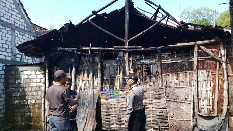 “Namun saat kembali kerumah, korban terkejut melihat kobaran api yang sudah menjalar ke dinding rumah atau gebyok yang terbuat dari anyaman bambu.” terang Kapolsek.