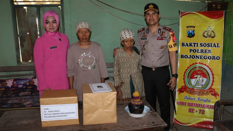 Bojonegoro - Kapolres Bojonegoro AKBP Ary Fadli SIK MH MSi bersama Ketua Bhayangkari cabang Bojonegoro Ny Rani Ary Fadli dan rombongan, pada Senin (09/07/2018) laksanakan kunjungan kerja (kunker) ke Polsek Trucuk. Acara kunjungan kerja tersebbut juga dirangkai dengan kegiatan bakti sosial (baksos) dengan mengunjungi Muhammad Affandi (14) anak penderita penyakit hidrosefalus, warga Desa Kandangan RT 009 RW 002 Kecamatan Trucuk Kabupaten Bojonegoro.