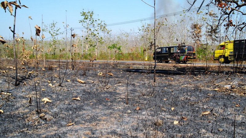 Berdasarkan pemantauan, bekas-bekas rerumputan yang terbakar di bawah tegakan pohon sudah banyak terlihat di kawasan hutan di jalur Blora-Cepu. Petugas Perhutani yang mengetahui adanya kobaran api, segera memadamkan api tersebut. Namun kerap petugas datang terlambat. Akibatnya kobaran api telah meluas dan menghanguskan daun dan semak belukar kering di bawah tegakan pohon jati.