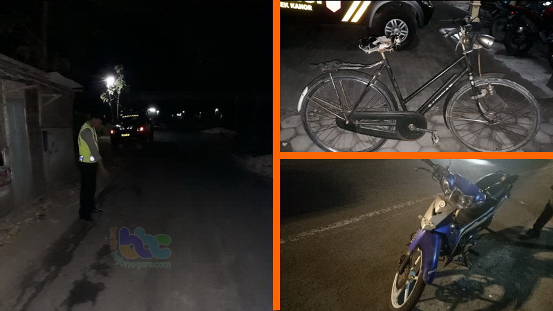 Sesampai di lokasi kejadian, tepatnya di depan lapangan sepakbola, lanjut Kapolsek, sepeda motor Yamaha Vega yang hendak mendahului sepeda pancal berjalan terlalu menepi ke kiri dikarenakan ada kendaraan dari arah berlawanan yatitu dari utara ke selatan.