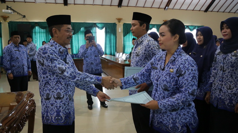 Bojonegoro - Pemerintah Kabupaten Bojonegoro melalui Badan Kepegawaian Pendidikan dan Pelatihan, pada Jumat (20/07/2018), laksanakan penyerahan 172 Surat Keputusan PNS dan Pengambilan Sumpah atau Janji PNS di lingkungan Pemerintah Kabupaten Bojonegoro.