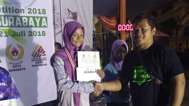 Di kategori speed world record umum putri misalnya Aries Susanti Rahayu (Grobogan) yang pernah meraih emas di kejuaraan internasional di China belum lama ini bersaing dengan rekan-rekannya sesama pelatnas Indonesia seperti Agustina Sari (Blora) dan Rajiah Sallsabillah (Tengerang). Hasilnya, giliran Rajiah yang meraih medali emas di Surabaya. Aries Susanti Rahayu harus puas dengan raihan perak. Sedangkan Agustina Sari merebut perunggu. Penampilan para atlet pelatnas Asian Games di kejuaraan di Surabaya sekaligus juga sebagai persiapan berlaga di Asian Games yang akan berlangsung di Jakarta dan Palembang, 18 Agustus-2 September 2018. (teg/kik)