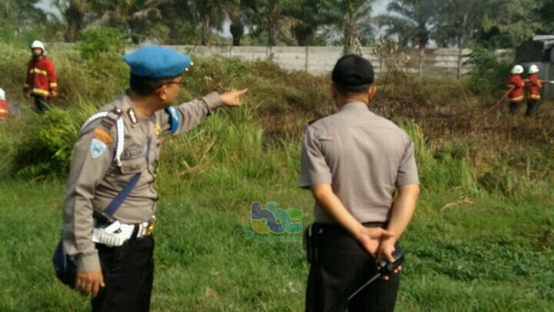 “Saat petugas datang, dua unit mobil pemadam kebakaran sudah berada di lokasi kejadian dan petugas sudah berupaya memadamkan kobaran api di lahan tersebut,” terang kapolsek.