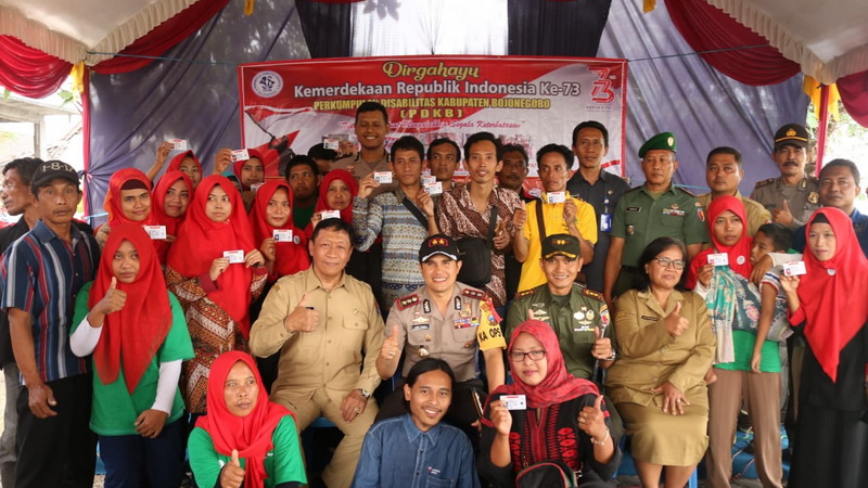 Bojonegoro - Dalam menyambut peringatan HUT Kemerdekaan RI ke-73 tahun 2018, Satuan Lalu Lintas Polres Bojonegoro pada hari Selasa (31/07/2018), memberikan 25 Surat Ijin Mengemudi (SIM) gratis kepada penyandang disabilitas (difabel) yang tergabung dalam Perkumpulan Difabel Kabupaten Bojonegoro (PDKB) di kantor sekretariat PDKB Desa Lengkong Kecamatan Balen Kabupaten Bojonegoro.