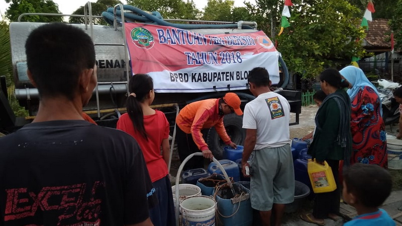 Penyaluran air bersih mulai dilaksanakan BPBD Blora mulai Rabu (01/8/2018) dengan menyasar beberapa desa yang ada di wilayah Blora Selatan. Berdasarkan data yang diterima dari BPBD Blora, setidaknya sudah ada delapan desa yang diberikan bantuan air bersih.