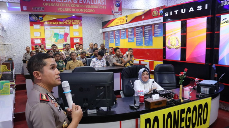 "Kami pantau laporan tindak kejahatan dan arus lalu lintas serta daerah rawan kemacetan melalui monitor kamera CCTV yang disebar di Kota Bojonegoro," terang Kapolres Bojonegoro saat memaparkan tekhnologi yang dimiliki Polres Bojonegoro di ruang MIC4.