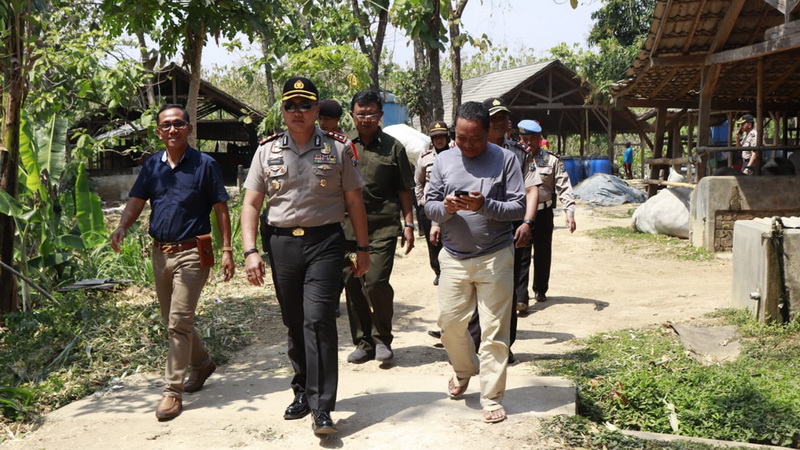 Tuban (Montong) - Guna memastikan hewan-hewan ternak yang akan disembelih sebagai hewan kurban Iduladha 1439 H, khususnya di wilayah Kabupaten Tuban, benar-benar dalam kondisi sehat dan aman dari penyakit. Serta untuk memantau harga jual hewan ternak tersebut, Kapolres Tuban AKBP Nanang Haryono SH SIK MSi, beserta pejabat utama Polres Tuban, pada Kamis (09/08/2018)siang, laksanakan survei dan monitoring di peternakan milik H Mubib, yang berlokasi di Desa Talun Kecamatan Montong Kabupaten Tuban.