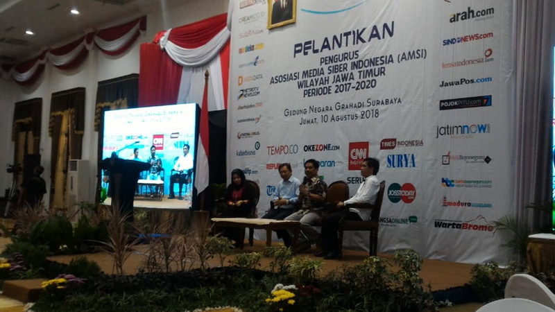 Surabaya - Pengurus Asosiasi Media Siber Indonesia (AMSI) Wilayah Jawa Timur Periode 2017-2020 resmi dilantik di Gedung Negara Grahadi Surabaya, pada Jumat (10/8/2018). Pelantikan dilaksanakan oleh Pengurus AMSI Pusat dan dihadiri oleh Gubernur Jawa Timur Dr H Soekarwo, atau yang akrab dipanggil Pakde Karwo.