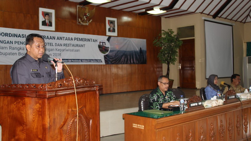 Bojonegoro - Dalam rangka pengembangan kepariwisataan di Kabupaten Bojonegoro, Pemerintah Kabupaten (Pemkab) Bojonegoro melalui Dinas Kebudayaan dan Pariwisata (Disbudpar), pada Selasa (21/08/2018), bertempat di Ruang Angling Dharma Pemkab Bojonegoro, menggelar kegiatan Koordinasi Kemitraan antara Pemerintah dengan Perusahaan Hotel dan Restoran.