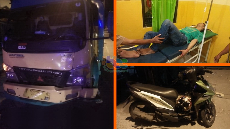 Diduga karena pengemudi truk kurang konsentrasi, menabrak sepeda motor yang hendak belok ke arah kanan jalan. Akibatnya, pengendara sepeda motor mengalami luka berat dan harus mendapatkan perawatan medis di rumah sakit.