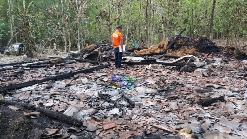 Bojonegoro (Sukosewu) - Kebakaran hebat menghanguskan bangunan rumah yang difungsikan sebagai kandang kambing, milik Ahmad Badar (53) warga Dusun Tlapak Desa Sitiaji RT 021 RW 002 Kecamatan Sukosewu Kabupaten Bojonegoro, pada Kamis (23/08/2018) sekira pukul 13.00 WIB.