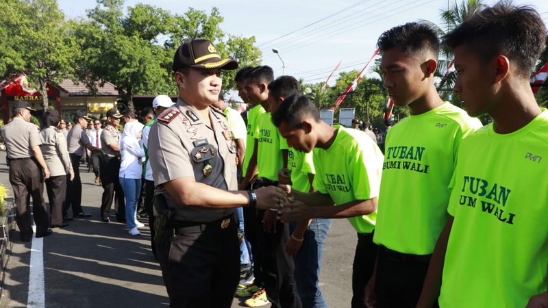 Tuban - Kapolres Tuban, AKBP Nanang Haryono SH SIK MSi, yang juga sebagai Ketua Umum Ex Officio, Persatuan Bola Voli Seluruh Indonesia (PBVSI) Kabupaten Tuban, pada Jumat (24/08/2018) pagi tadi, memberangkatan Tim Yunior Bola Volly Indoor Tuban, yang akan mengikuti Kejuaraan Provinsi (Kejurprov) Bola Voli Piala Kapolda Jatim atau Kapolda Cup di Jember.