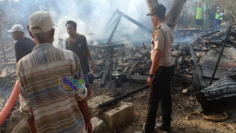 Tuban (Plumpang) - Kebakaran menghanguskan rumah milik Hartatik (47) warga Desa Bandungrejo Kecamatan Plumpang Kabupaten Tuban, pada Minggu (26/08/2018) sekira pukul 15.00 WIB. Diduga penyebab kebakaran atau sumber api berasal dari tungku atau pawon yang disangka oleh korban sudah padam, namun ternyata masih menyala dan apinya membakar tumpukan kayu yang berada di dekatnya hingga kemudian api membesar dan membakar dapur serta seluruh rumah milik korban.