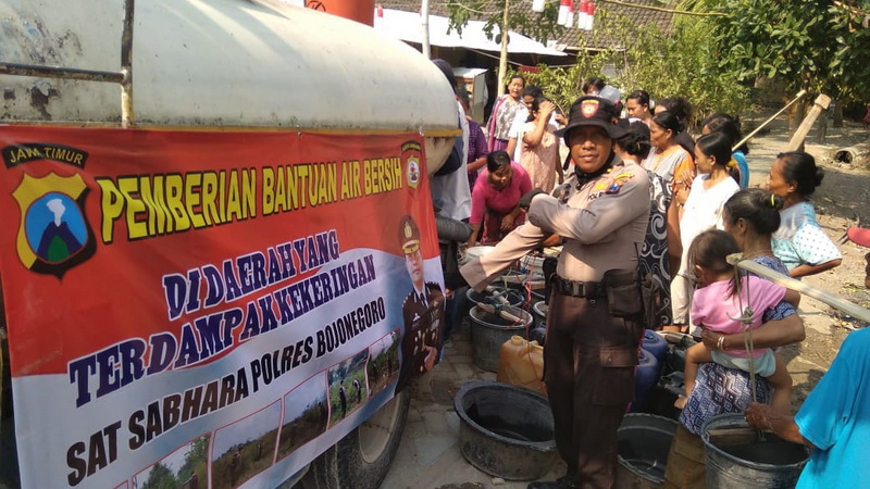 Polisi di Bojonegoro ini Beri Bantuan Air Bersih Pada Warga Terdampak Kekeringan