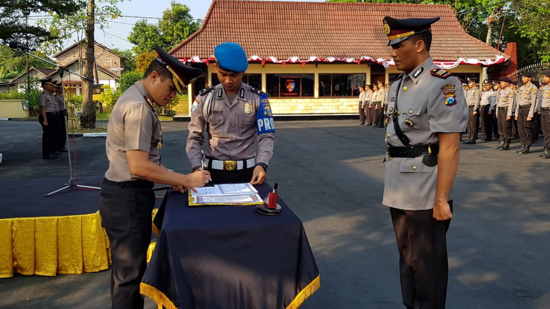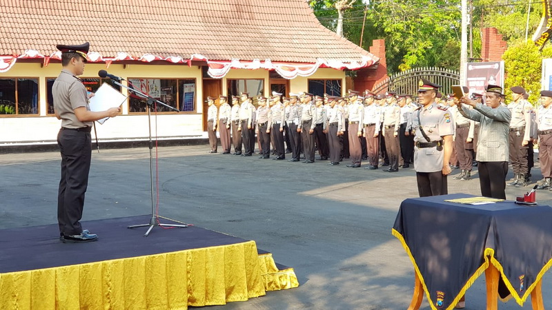 Bojonegoro - Kapolres Bojonegoro AKBP Ary Fadli SIK MH MSi pada Kamis (30/08/2018) pagi, memimpin serah terima jabatan (sertijab) Kepala Satuan Sabhara (Kasat Sabhara) Polres Bojonegoro.