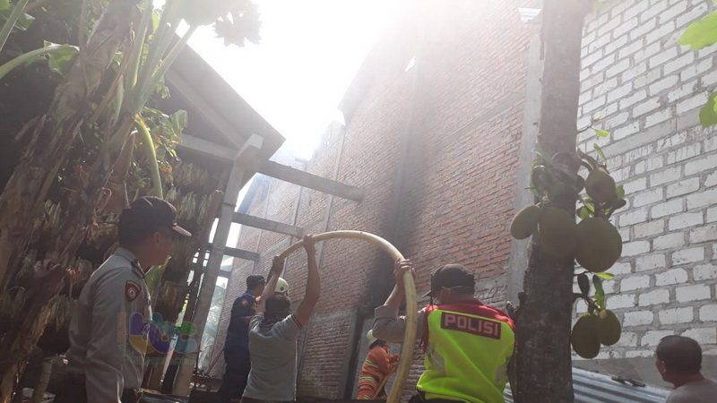 Mengetahui kejadian tersebut saksi segera meminta bantuan pada warga sekitar dan menghubungi Dinas Pemadam Kebakaran guna membantu melakukan pemadaman serta melaporkan peristiwa tersebut pada Polsek Ngasem.