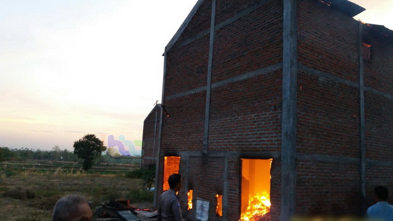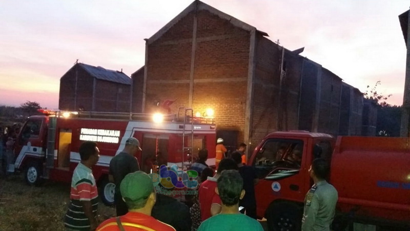 Bojonegoro (Sugihwaras) - Gudang oven atau pengeringan tembakau, milik milik Susilo (55), Kepala Desa Trate Kecamatan Sugihwaras Kabupaten Bojonegoro yang berlokasi di Dusun Banjarejo RT 013 RW 007 desa setempat yang saat ini sedang disewa oleh Wartono (60), warga Dusun Asri Desa Malangan Kecamatan Tulung Kabupaten Klaten Provinsi Jawa Tengah, pada Selasa (04/09/2018) sekira pukul 17.00 WIB petang tadi, terbakar.