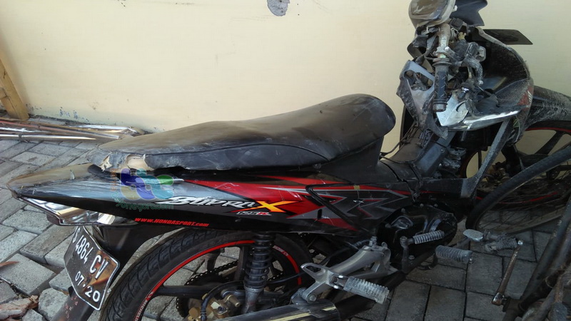 Akibat dari kecelakaan tersebut pengendara sepeda motor mengalami luka-luka patah tangan kanan, luka babras di kepala dan kaki. Sedangkan yang dibonceng mengalami luka babras dan kendaraan korban juga mengalami kerusakan material.