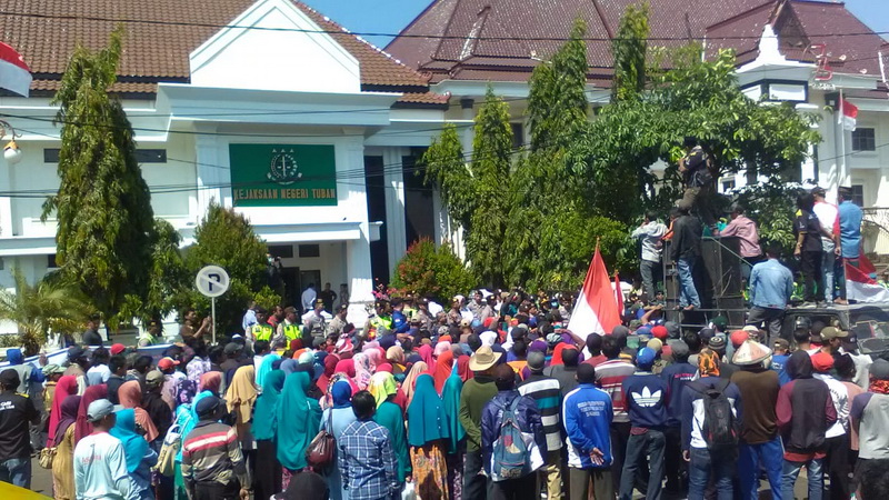 Tuban - Ratusan warga Desa Mojoagung Kecamatan Soko Kabupaten Tuban menggelar aksi unjuk rasa di depan kantor Kejaksaan Negeri Tuban pada Senin (10/09/2018) kemarin.