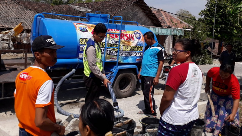 Melalui pragram polisi peduli Kapolres Bojonegoro AKBP Ary Fadli SIK MH MSi, yang diberi label Polisi Dulure Dewe(PDD), bahwa selama musim kemarau tahun ini kegiatan di fokuskan untuk memberikan bantuan air bersih kepada warga terdampak kekeringan.