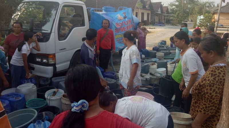 “Dampak musim kemarau tahun ini mengakibatkan kekeringan dan warga kesulitan air bersih, sehingga kita berikan bantuan,” jelas AKP Rumadi.