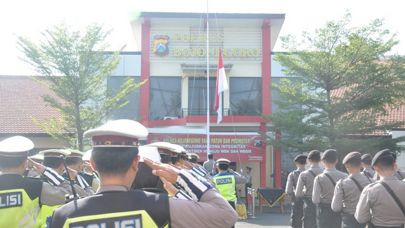 Bojonegoro - Kepolisian Resort Bojonegoro pada Senin (17/09/2018) pagi, bertempat di halaman Mapolres Bojonegoro, menggelar upacara hari kesadaran nasional. Upacara yang rutin digelar setiap tangga 17 bulan berjalan tersebut dipimpin oleh Wakapolres Bojonegoro, Kompol Achmad Fauzy SH SIK MIK, diikuti oleh Pejabat Utama Polres Bojonegoro, Kapolsek Jajaran, seluruh anggota Polres Bojonegoro serta ASN yang berada dilingkungan Polres Bojonegoro.