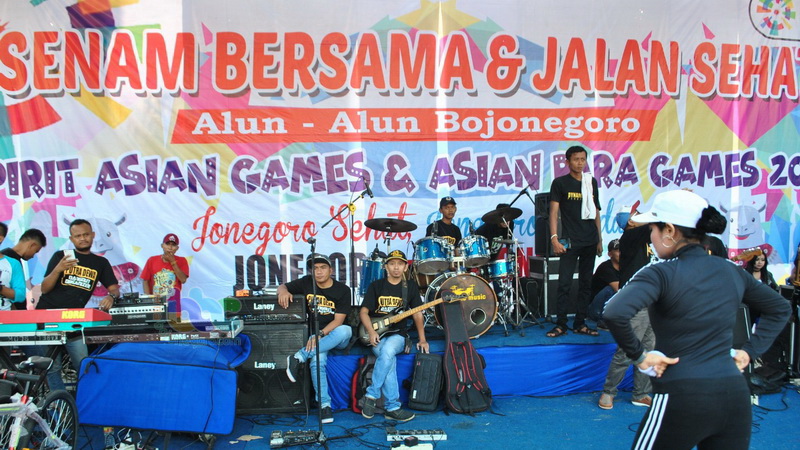 Ribuan masyarakat Bojonegoro pada Minggu (23/09/2018) pagi tadi, antusias mengikuti jalan sehat yang dirangkai dengan kegiatan Senam Dayung bersama, di Alun-alun Kota Bojonegoro. Nampak warga masyarakat sangat antusias dan bersemangat mengikuti gerakan instruktur senam bersama tersebut, yang diiringi lagu Meraih Bintang yang dipopulerkan Via Vallen.