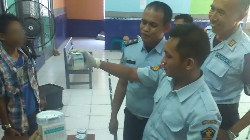 Tuba - Warga Binaan Pemasyarakatan (WBP) di Lembaga Pemasyarakatan (Lapas) Klas IIB Tuban dengan kasus narkotika, pada Kamis (27/09/2018) jalani pemeriksaan kesehatan berupa tes urine secara mendadak, yang dilakukan petugas lapas. Hal itu dilakukan pasca terungkapnya kasus penyelundupan pil dobel L ke dalam lembaga pemasyarakatan tersebut.