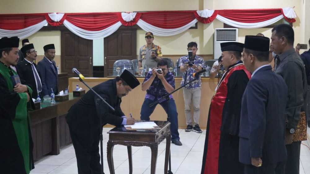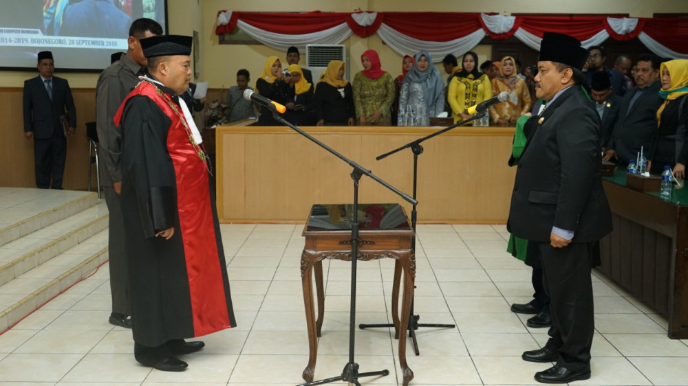 Bojonegoro - Bertempat di ruang rapat paripurna Gedung Dewan Perwakilan Rakyat Daerah (DPRD) Kabupaten Bojonegoro, pada Jumat (28/09/2018) malam, digelar rapat paripurna istimewa, dengan agenda utama Pengucapan Sumpah Ketua DPRD Kabupaten Bojonegoro Pengganti Antar Waktu (PAW), Sigit Kusharijanto SE MM dari Partai Golkar, yang menggantikan Hj Mitroatin SPd, juga dari partai Golkar, yang sebelumnya mengundurkan karena menjadi salah satu kandidat wakil bupati, dalam pilkada serentak 2018 lalu.
