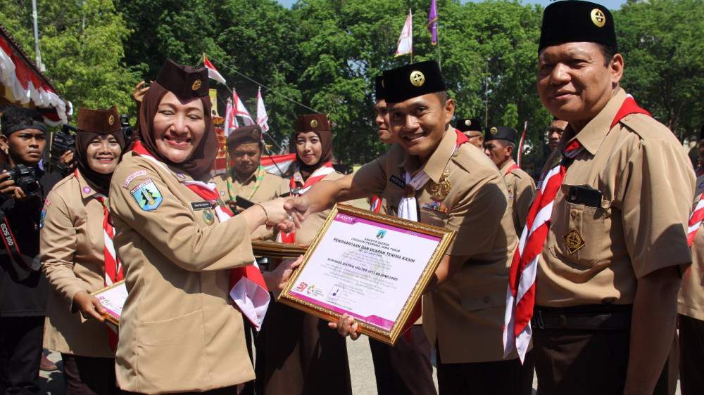 Bupati Pimpin Upacara Peringatan Hari Pramuka di Alun-Alun Bojonegoro