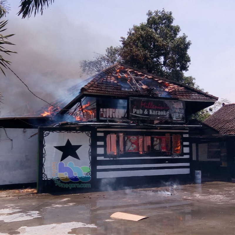 Blora - Warga Kelurahan Balun Kecamatan Cepu Kabupaten Blora digegerkan dengan adanya peristiwa kebakaran salah satu tempat hiburan malam di kelurahan setempat. Millenium Pub & Karaoke yang berlokasi di Jalan RSU Cepu Kecamatan Cepu Kabupaten Blora tersebut pada Minggu (07/10/2018) sekitar pukul 10.00 WIB, ludes terbakar.