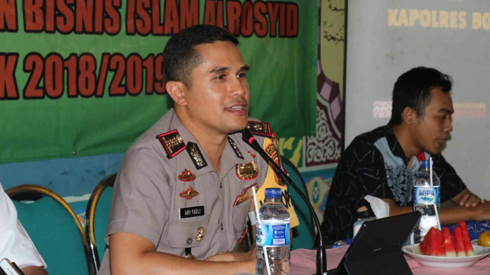 Bojonegoro - Kapolres Bojonegoro AKBP Ary Fadli SIK MH MSi, pada Rabu (10/10/2018) sekira pukul 15.00 WIB, di Pondok Pesantren Al-Rosyid Kendal Kecamatan Dander Kabupaten Bojonegoro, memberikan materi wawasan kebangsaan kepada Mahasiswa baru, Sekolah Tinggi Ekonomi dan Bisnis Islam Al-Rosyid (STEBIA), Tahun Akademik 2018/2019.