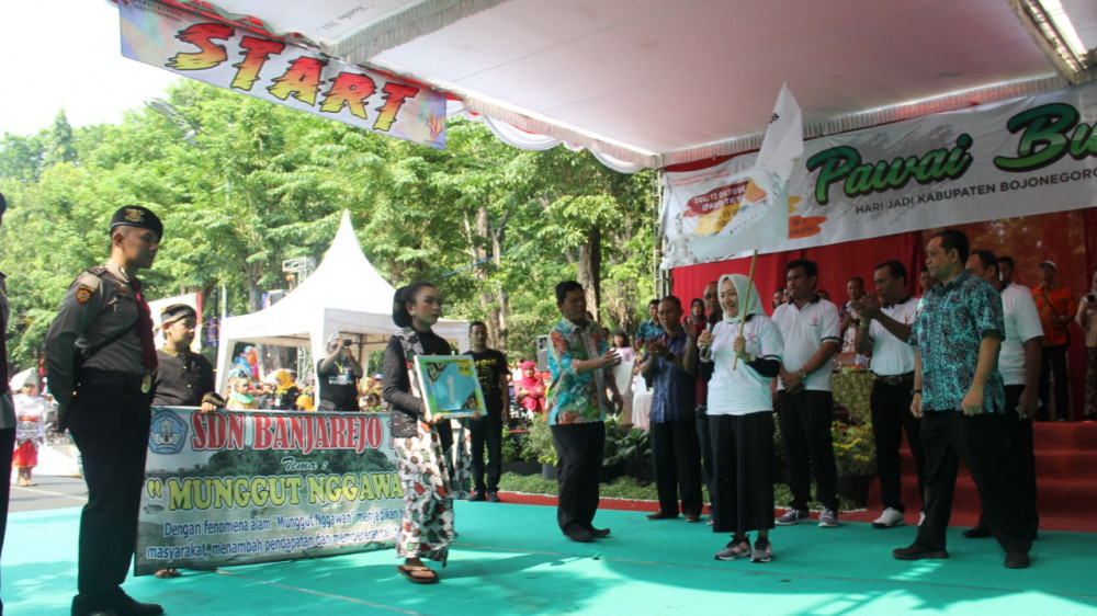 Pawai yang mengambil start di Jalan Mas Tumapel, depan Pendapa Pemkab Bojonegoro tersebut, diberangkatkan secara simbolis oleh Bupati Bojonegoro, DR Hj Anna Muawanah, diikuti 33 peserta yang terdiri dari 23 peserta dari tingkat SD dan MI serta 10 peserta dari tingkat SMP dan MTS.