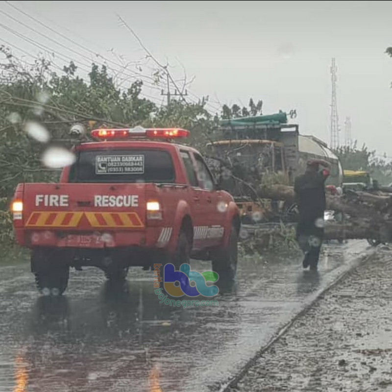 Pohon Tumbang di Jalan Raya Kalitidu Bojonegoro Sempat Bikin Arus Lau-Lintas Macet