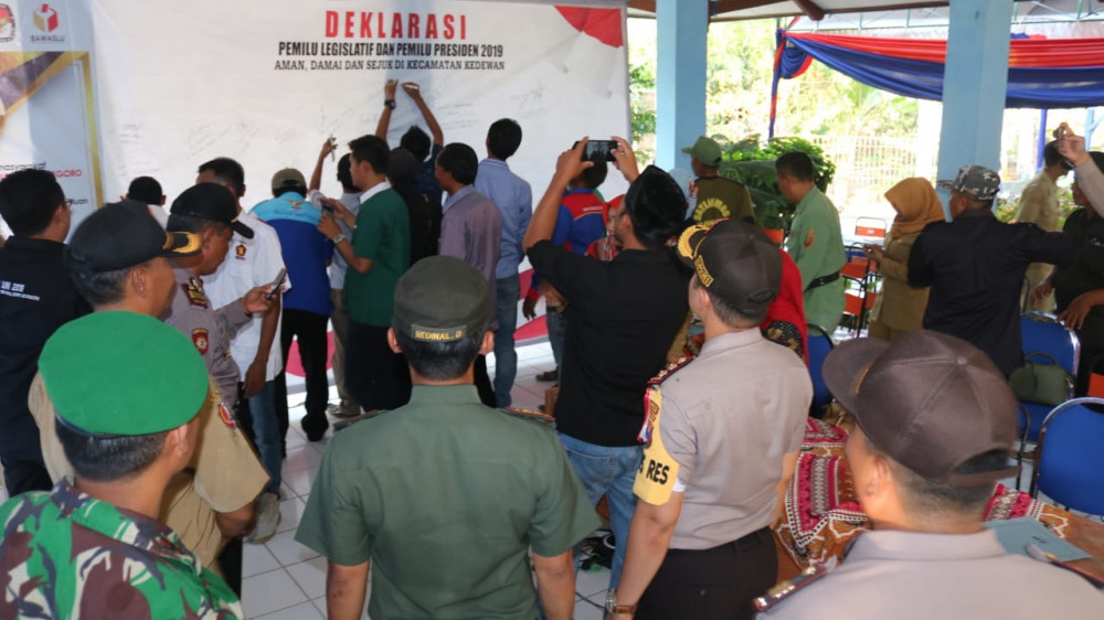 Hadir dalam deklarasi tersebut, Kapolres Bojonegoro AKBP Ary Fadli SIK MH MSi, Dandim 0813 Bojonegoro Letkol Arh Redinal Dewanto SSos dan diikuti oleh Forpimka Kecamatan Kedewan, Ketua PPK dan Panwascam, PPL dan PPS, Ketua Partai se-Kecamatan Kedewan serta Caleg dari masing-masing partai se-Kecamatan Kedewan.