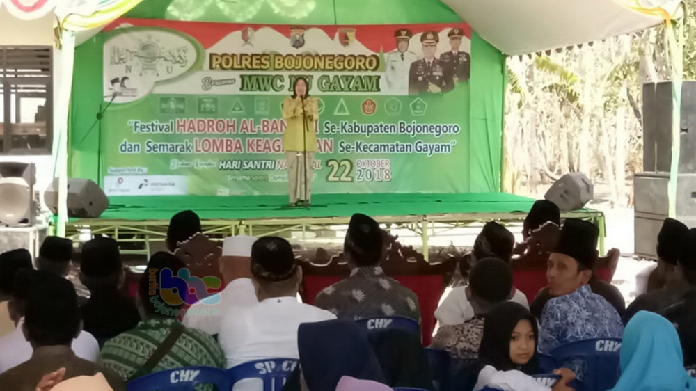 Bupati Bojonegoro, Dr Hj Anna Muawanah, dalam sambutannya mengungkapkan bahwa sejarah adanya Hari Santri Nasional, berawal dari pada zaman perjuangan melawan penjajah mbah Hasim Asyari, selaku pendiri NU, yang memerintahkan kepada seluruh santrinya yang yang berada radius 100 kilometer, untuk mengangkat senjata bambu runcing, berjihad mengusir penjajah dari tanah air Indonesia.