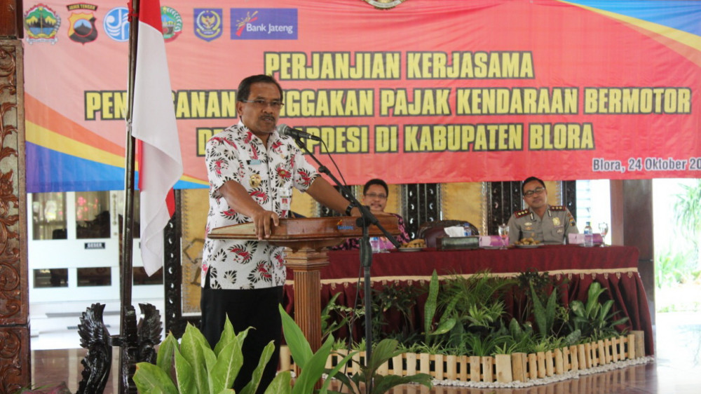 Bertempat di Pendopo Rumah Dinas Bupati Blora, penandatanganan kerjasama disaksikan langsung oleh Bupati Djoko Nugroho, Kepala Badan Pengelolaan Pendapatan Daerah (BPPD) Jawa Tengah, Dr Ir Ihwan Sudrajat MM, Kapolres AKBP Saptono SIK MH dan Sekda Komang Gede Irawadi SE MSi.