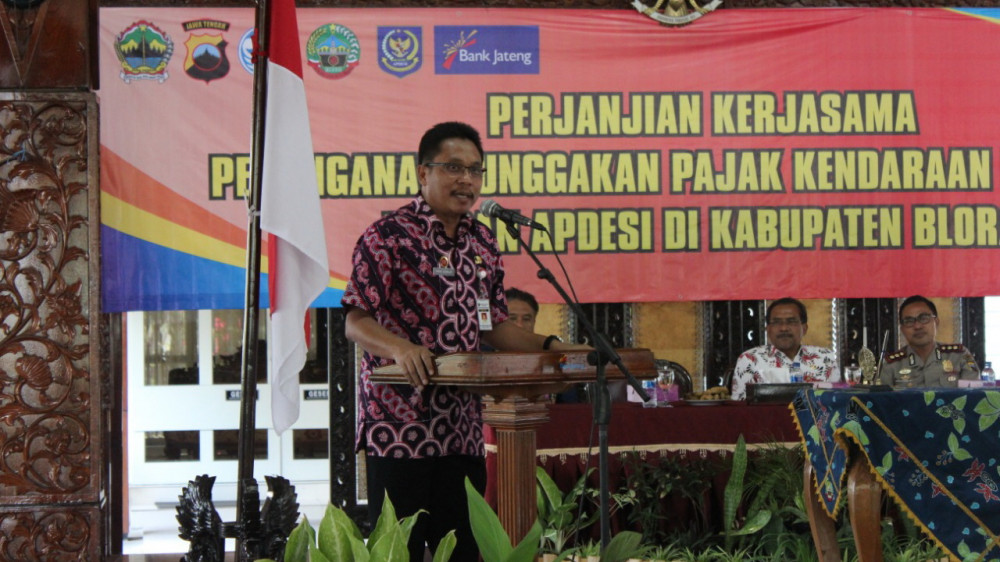 Blora - Guna menekan jumlah tunggakan pajak kendaraan bermotor (PKB) dari kalangan masyarakat, Unit Pelayanan Pendapatan Daerah (UPPD) Samsat Blora lakukan terobosan baru, yakni menjalin kerjasama dengan seluruh kepala desa yang tergabung dalam Asosiasi Pemerintah Desa Seluruh Indonesia (APDESI) Kabupaten Blora.