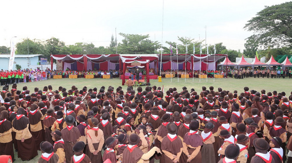Bojonegoro - Bupati Bojonegoro DR Hj Anna Muawanah, pada Minggu (28/10/2018), bertempat di Lapangan Desa Tumbrasanom Kecamatan Kedungadem, membuka acara “Gerakan Hijau Alamku Dengan Banyu Leri." Gerakan ini sebagai embrio menumbuhkan partisipasi masyarakat dalam merawat tanaman