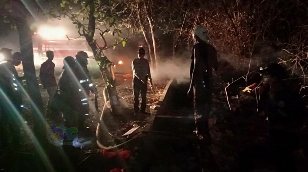 Bojonegoro Kota - Kebakaran rumpun bambu kembali terjadi pada Rabu (31/10/2018) sekira pukul 17.00 WIB, di tanah pekarangan milik Pemerintah Desa Tumbrasanom Kecamatan Kedungadem Kabupaten Bojonegoro.