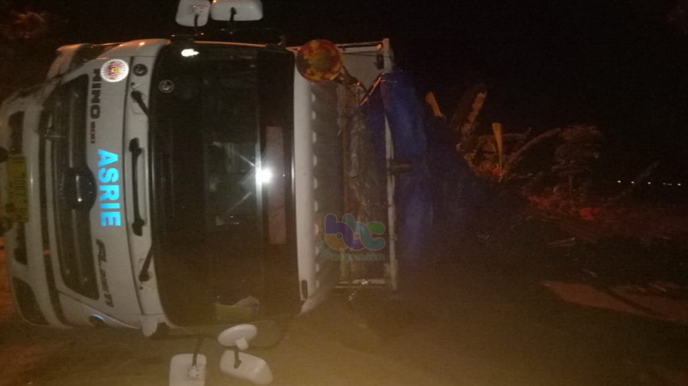 Hindari Xenia Yang Oleng Akibat Pecah Ban, Truk Tonton Terguling di Bojonegoro