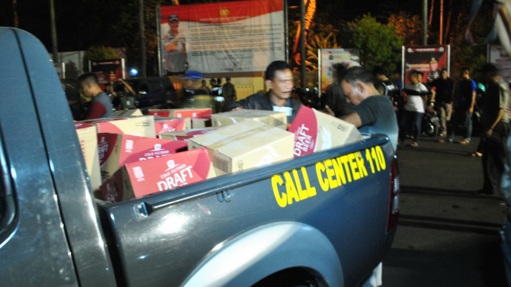 Kabag Ops menerangkan, bahwa dari kegiatan patroli gabungan tersebut, petugas mengamankan sebanyak 606 botol minuman keras yang terdiri dari 300 mili liter arak oplosan, 496 botol bir Draft, 52 botol bir Bintang dan 57 botol bir Guinnes.