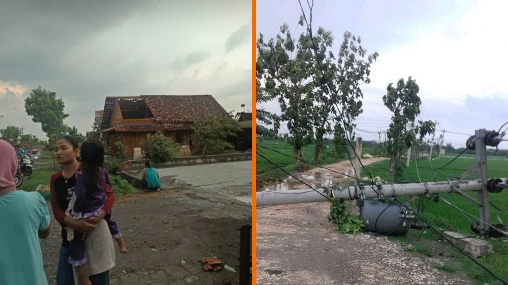 Seperti yang terjadi di Kota Blora, sejumlah atap dan fasilitas umum rusak akibat di terjang angin kencang, tak hanya itu hujan deras yang disertai angin kencang juga merobohkan sejumlah pohon dan tiang listrik.