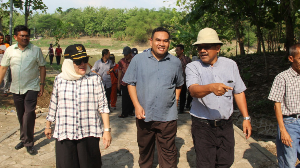 Bojonegoro - Bupati Bojonegoro, Dr Hj Anna Muawanah bersama Bupati Blora, Djoko Nugroho dan Wakil Bupati Blora, H Arief Rohman pada Sabtu (17/11/2018) lakukan peninjauan ke lokasi yang akan dibangun jembatan penghubung antara Kabupaten Bojonegoro dengan Kabupaten Blora, di Desa Luwihaji Kecamatan Ngraho Kabupaten Bojonegoro.