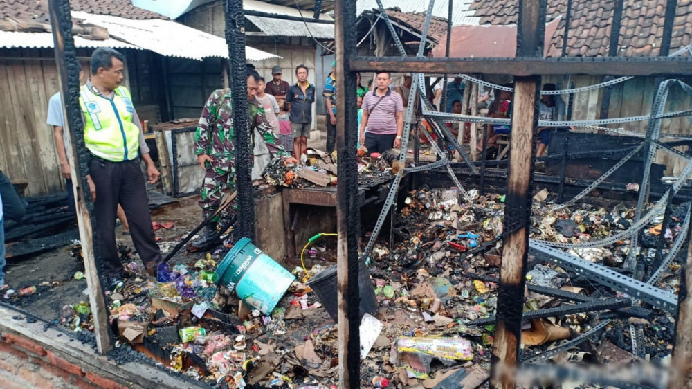 “Api dapat segera dipadamkan sehingga tidak menjalar pada kios yang lainnya, namun kios milik korban tersebut ludes terbakar.” tutur Kapolsek.