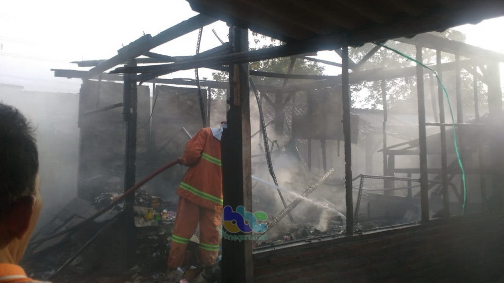 Bojonegoro (Tambakrejo) - Kebakaran menghanguskan kios di Pasar Legi Desa Kacangan Kecamatan Tambakrejo Kabupaten Bojonegoro, pada Selasa (20/11/2018) sore. Kios tersebut diketahui milik Koyin (42), warga Desa Sengon RT 001 RW 001 Kecamatan Ngambon Kabupaten Bojonegoro, yang sehari-hari menjual makanan ringan, rokok dan beberapa barang lainnya.