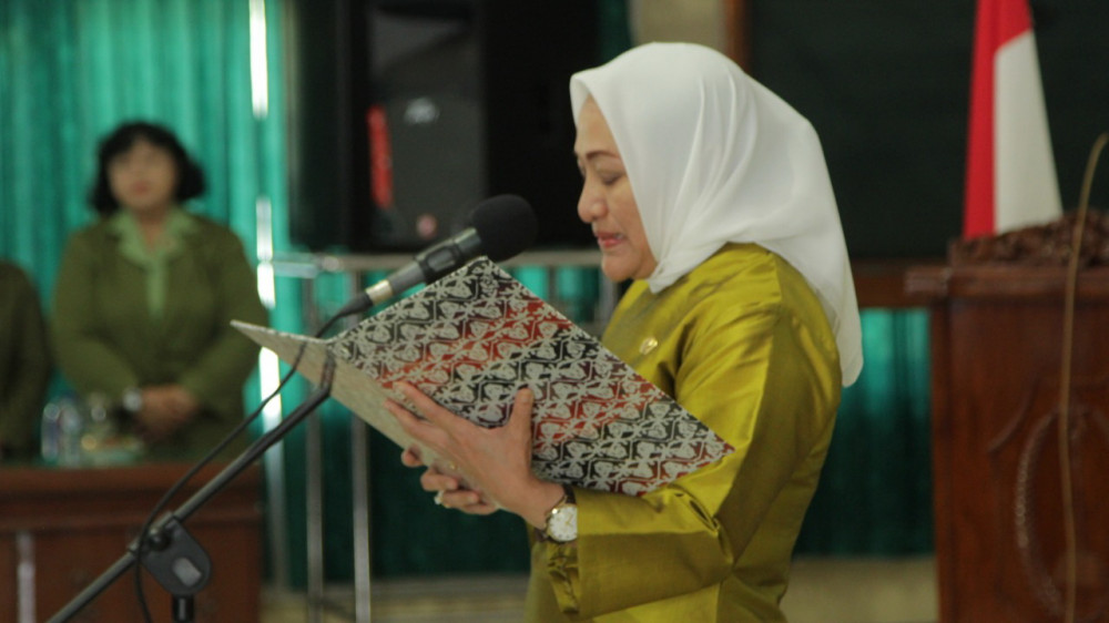 Bojonegoro - Saat melantik pengurus Tim Penggerak PKK Kabupaten Bojonegoro masa bhakti 2018-2023, pada Jumat (23/11/2018) di ruang Angling Dharm Pemkab Bojonegoro, Bupati Bojonegoro DR Hj Anna Muawanah berharap agar pengurus yang baru dilantik tersebut dapat bekerja dengan baik dan mendukung 17 program prioritas Pemerintah Kabupaten Bojonegoro.