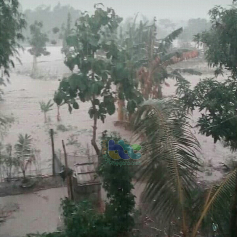 Bojonegoro (Bubulan) - Akibat hujan yang turun dengan intensitas cukup deras di wilayah Kecamatan Bubulan Kabupaten Bojonegoro, pada Minggu (25/11/2018) sore, mengakibatkan banjir menggenangi area pesawahan dan pemukiman warga di tiga desa, yaitu Desa Sumberbendo, Desa Ngorogunung dan Desa Clebung. Sebuah jembatan penghubung menuju Dusun Maor di Desa Clebung, Kecamatan Bubulan, dilaporkan putus akibat tergerus air.